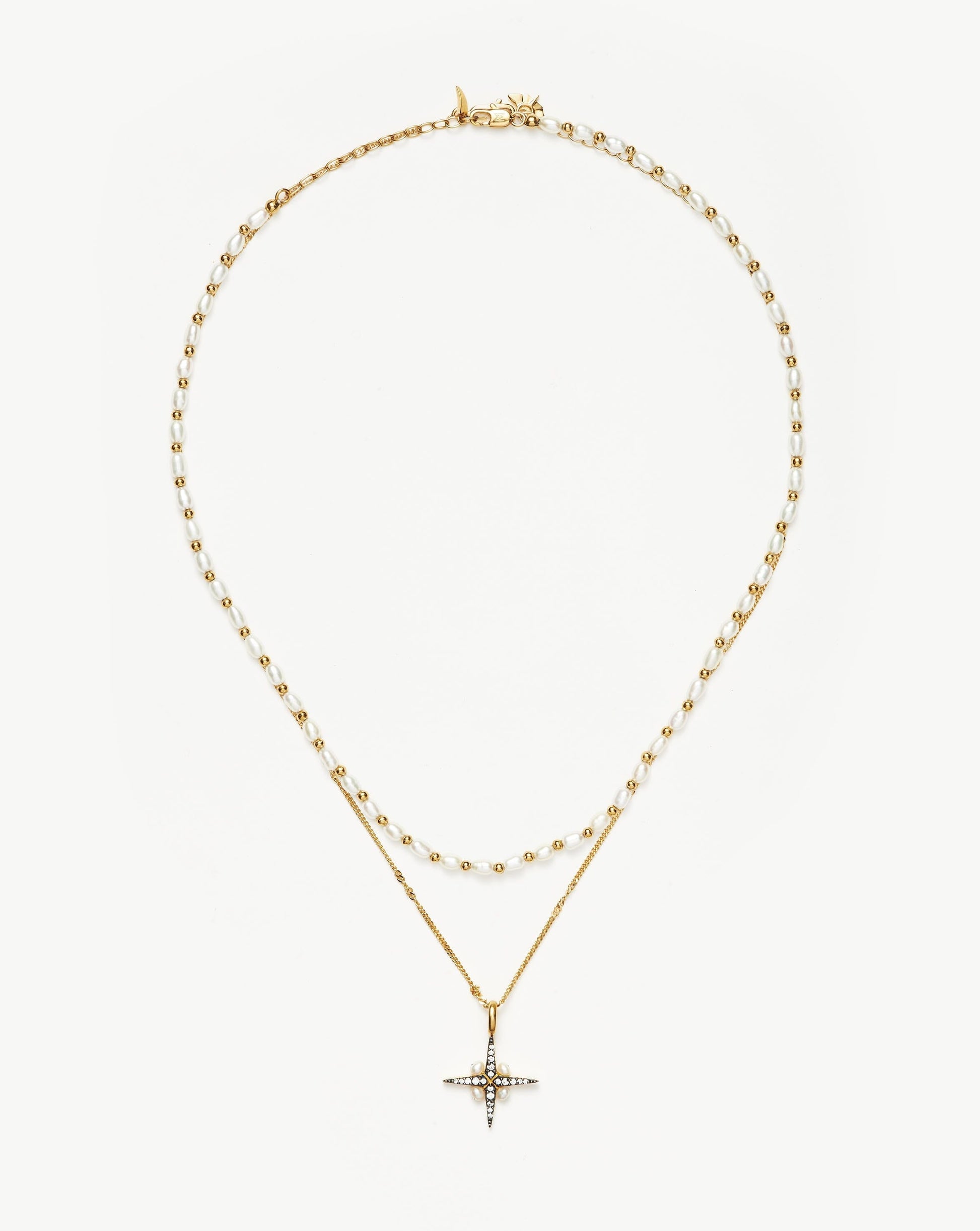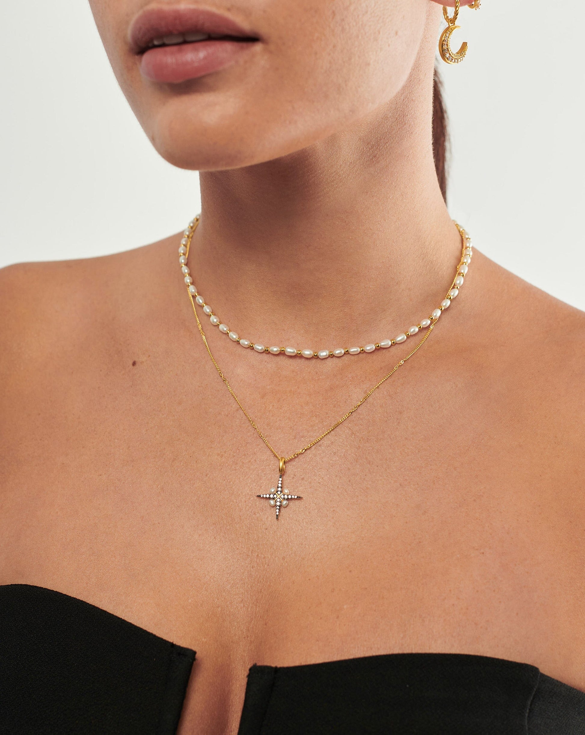 A standout pearl-inspired necklace set. Teamed together, the Harris Reed North Star Pearl Necklace and Seed Pearl Beaded Choker create an iconic duo you'll never want to take off. Save more when buying them together. Worth $336 | Now $278.